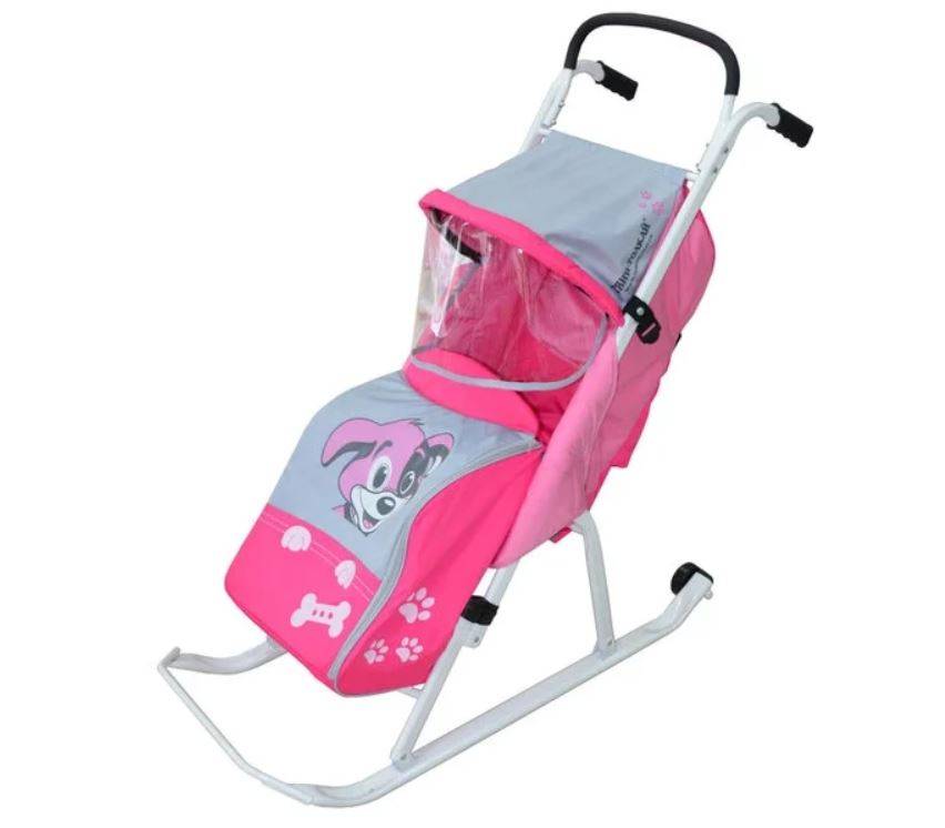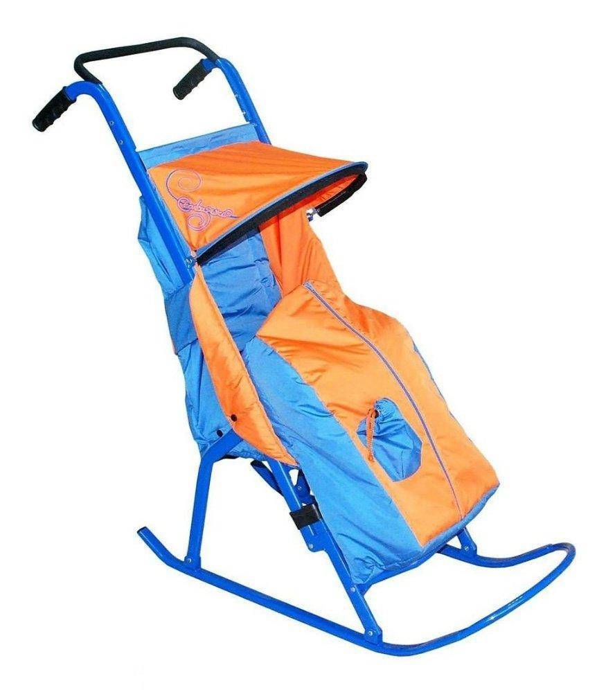 Образец недорогих санок для детей от 3 до 5 лет. Производитель заявляет, что конструкция способна выдержать вес до 50 килограммов. Значит, это устройство подойдет активным участникам зимних игр. Простая комплектация гарантирует низкую стоимость устройства. Защитные бортики выполнены из водонепроницаемой ткани, однако утеплитель в них отсутствует. Сидение коляски сконструировано из расчета перевозки детей в положении сидя, а также оборудовано ремнем для фиксации. Модель легкая и прочная.