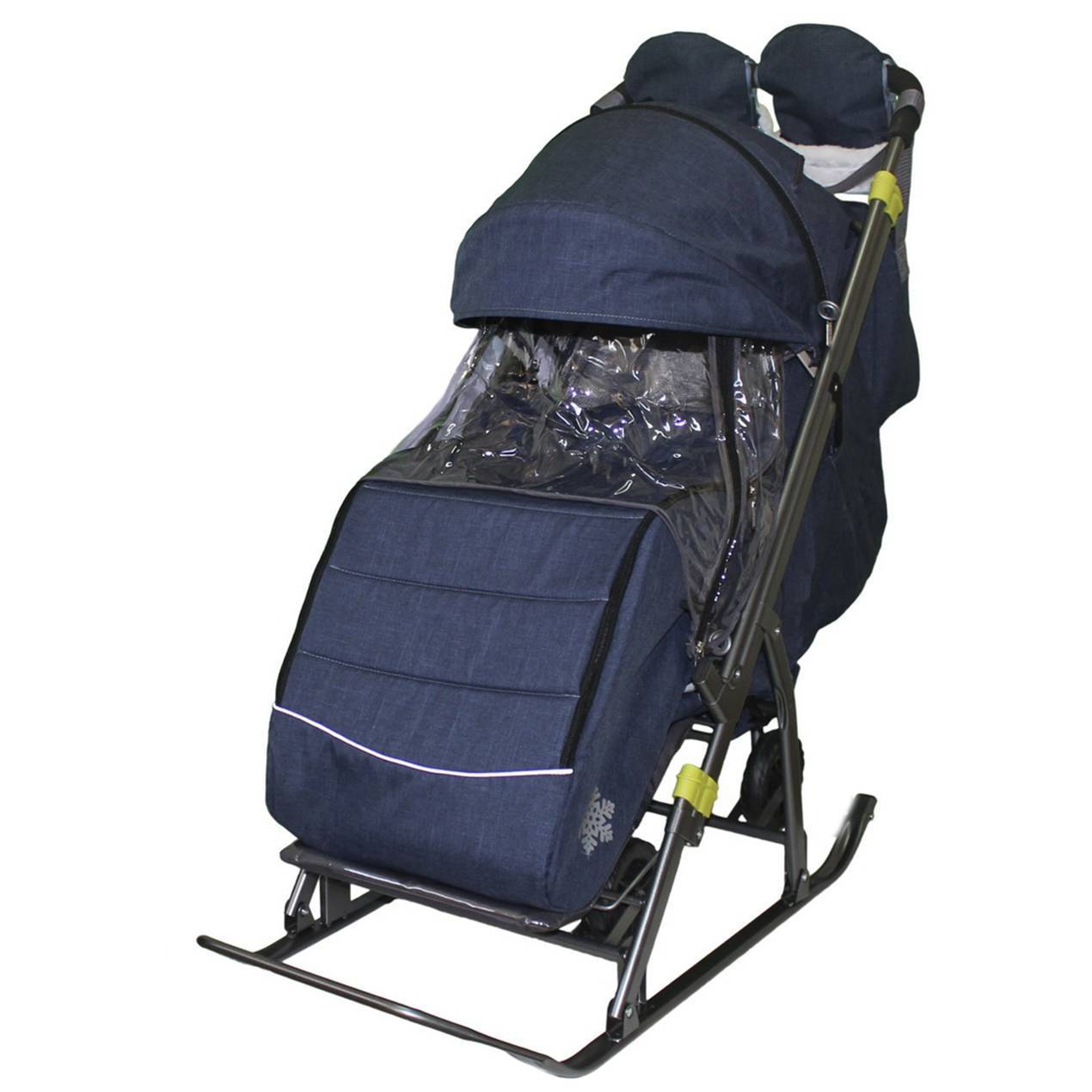 Для родителей маленьких близнецов такие санки – просто находка. Конструкция из металла выдерживает нагрузку до 80 кг и легко складывается. Спинка опускается до горизонтального положения.