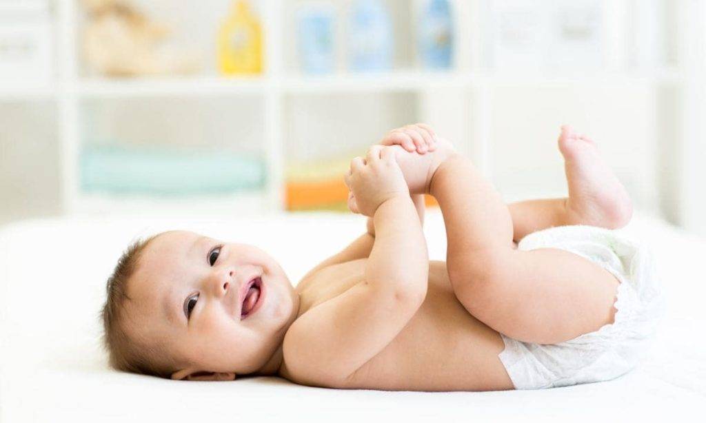 Осторожно прокрутите ее по часовой стрелки. Следите за тем, чтобы ножки ребенка были согнуты в коленях и прислонены к животику