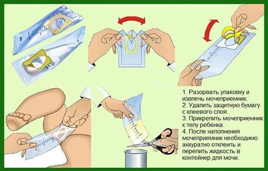 Еще один вариант собрать жидкий стул – это купить мочеборник и прикрепить его к попе младенца. Желательно делать это спящему ребенку, чтобы он поменьше сучил ножками и не сорвал мочеприемник в первые минуты. Когда пакетик прикреплен, можно надеть подгузник (любой – одноразовый или тканевый) и закрепить его достаточно свободно. С подгузником меньше вероятность, что мочесборник отклеится и малышу спокойнее.