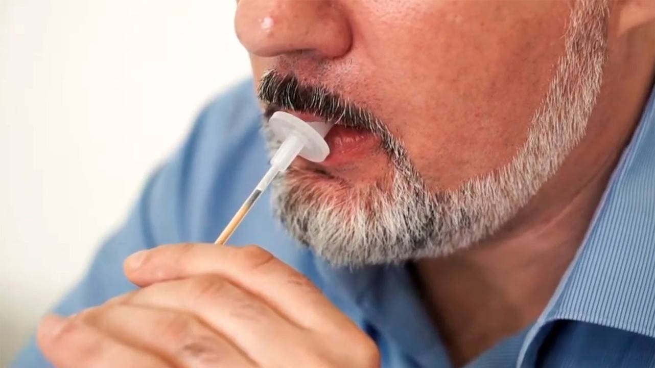 Пациент проходит дыхательный тест, определяющий хеликобактер пилори. Фото: Association of Medicine and Analytics / YouTube