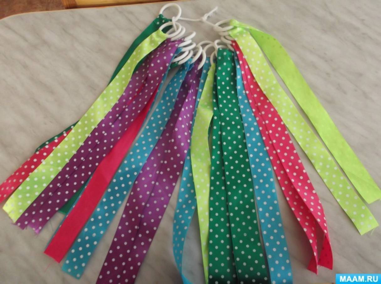 - ленточки разных цветов (по 2 шт. на каждого ребенка)
