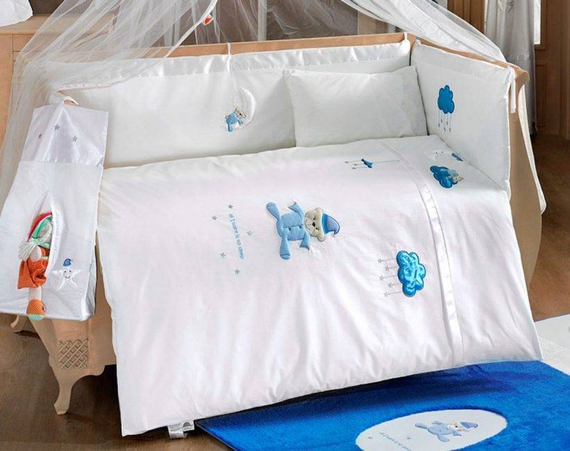 В последнее время фирмы-изготовители предлагают наборы в кроватку, где кроме стандартных наволочки, пододеяльника и простыни входит сама подушка, одеяло, защитный бортик и карман.