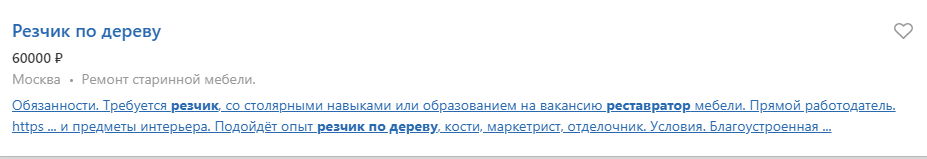 По данным портала Trud.com, стране нужно 120 резчиков по дереву. Больше всего предлагают реставраторам — 60 000–100 000 руб. В обычной мастерской можно рассчитывать на 40 000 рублей в месяц.