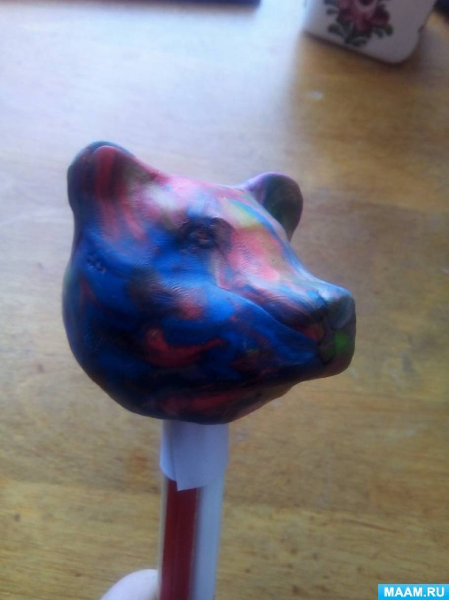 Из пластилина, лепим голову персонажа. Голова должна быть примерно с кулак 5-10 летнего ребёнка, но не слишком маленькой. В основание головы вставляем палочку, толщиной с палец.