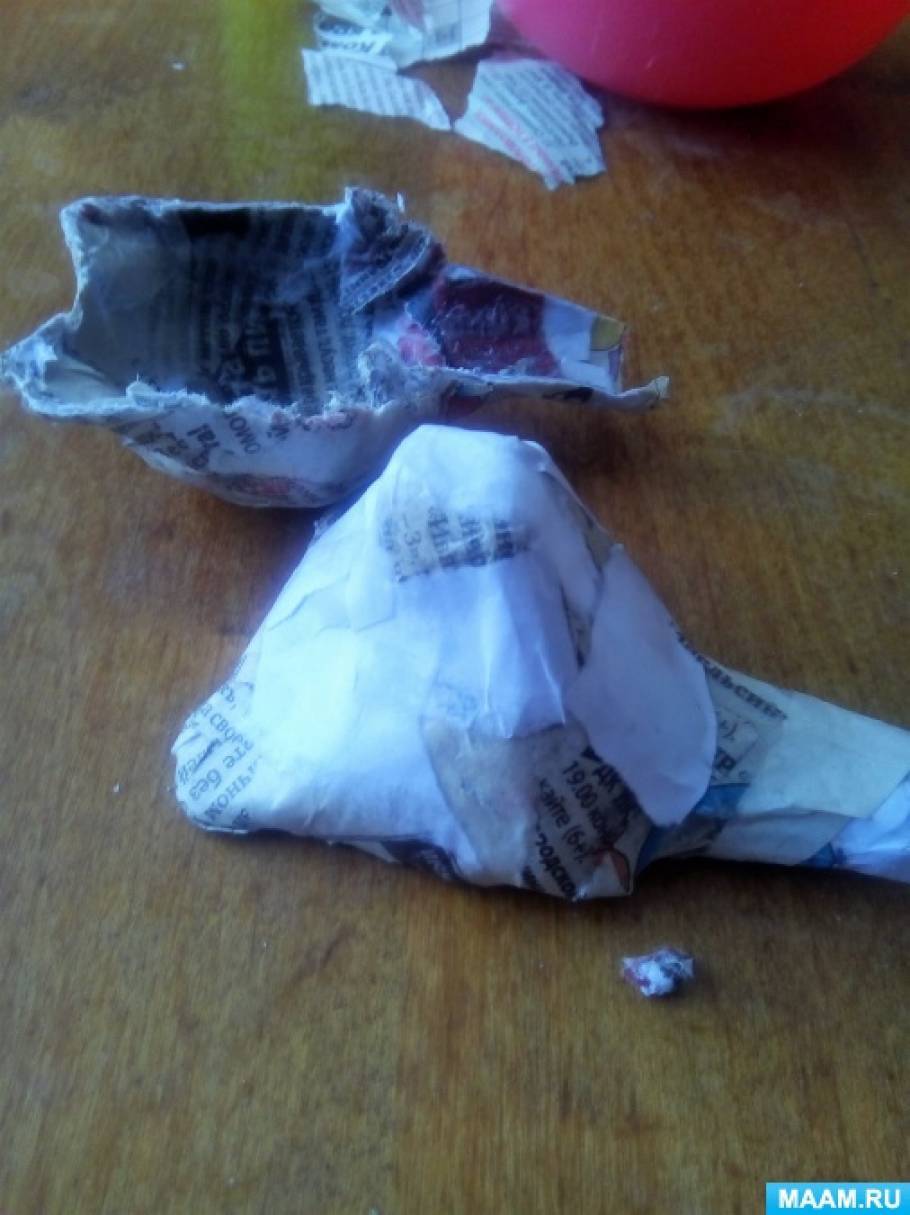 Получившиеся две половинки, соединяем и склеивают между собой 3-4 слоями белой бумаги, либо газетой.