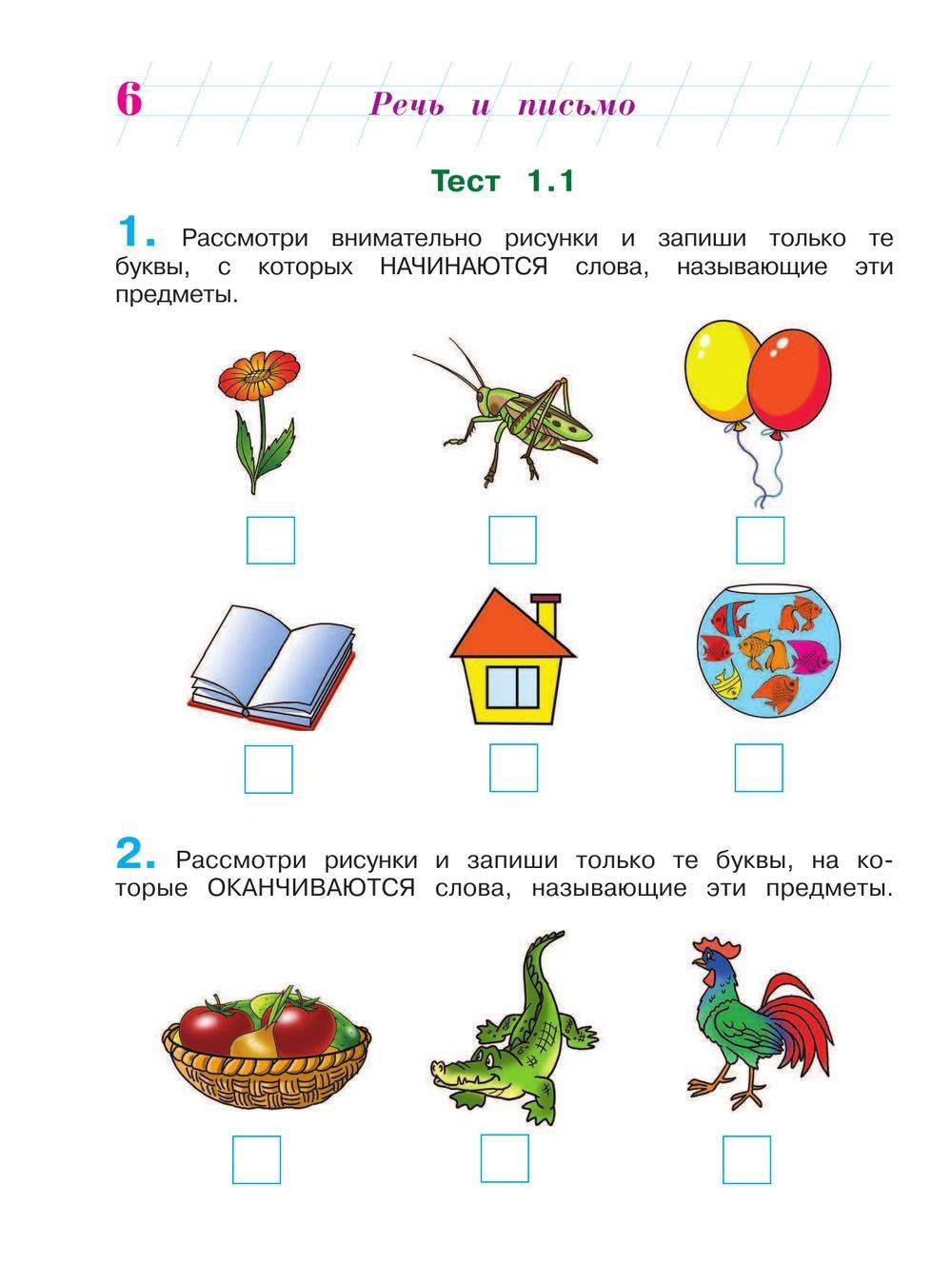 Во время тестирования ребенок должен будет выполнять различные упражнения, например, определять цвета и сортировать картинки по разным категориям, составить слова из букв, арифметические задачи и т.д. Тест на речь может включать в себя задания на определение звуков и слогов, а также построение предложений.