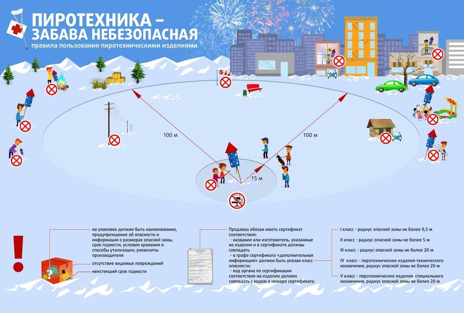 - Для III класс установлен радиус опасной зоны в 20 метров. Все салюты, фестивальные шары и ракеты имеют такой класс опасности.