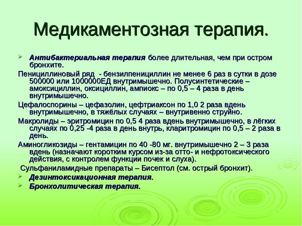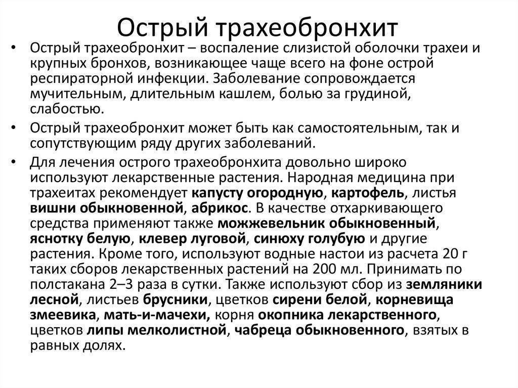 У взрослых лечение бронхита, трахеита обязательно должно носить комплексный характер. Если трахеобронхит вызван вирусами или бактериальной инфекцией, то обязательно назначается.