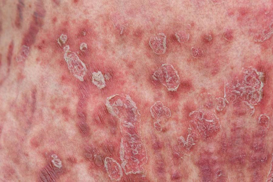 - шелушение кожи и образование чешуек на слизистых оболочках;