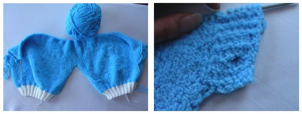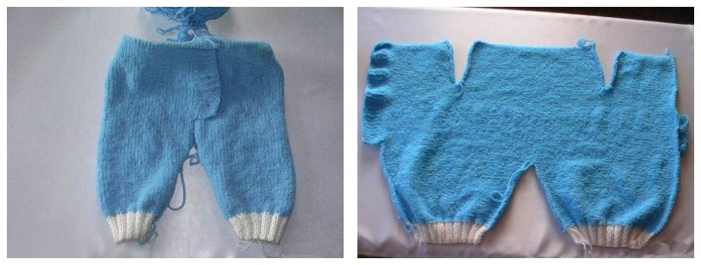 - Делая всё также, вывязывайте вторую штанину, рукава.