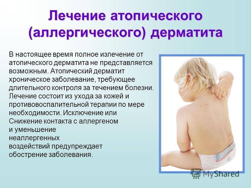 Отличительной чертой является хроническое течение, сопровождающееся периодами обострения. Как правило, этот вид дерматита развивается в детском возрасте и плохо поддается лечению. Главной причиной считается наследственная предрасположенность.