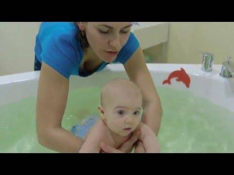 Процедуру купания принято проводить вечером, когда в сборе вся семья. Купать ребенка удобно при помощи детской ванночки с наклоном, или со специальным гамаком, чтобы можно было комфортно расположить в нем кроху. Также не возбраняется мыть младенца в большой ванне, надев на шею ребенка специальный круг. Он позволит грудничку держаться на воде без помощи маминых рук, и быть в полной безопасности в воде.