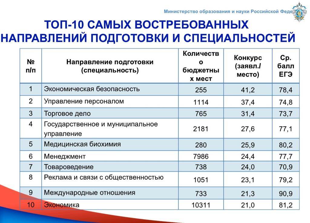 направлениях были баллы 143 и 148. Но даже здесь бюджетных мест катастрофически