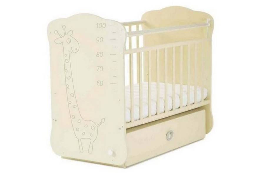 Удобная модель с маятником и выдвижным ящиком для хранения вещей и постельных принадлежностей. Выполнена из ДСП и массива березы. Является гипоаллергенной и безопасной для новорожденных.