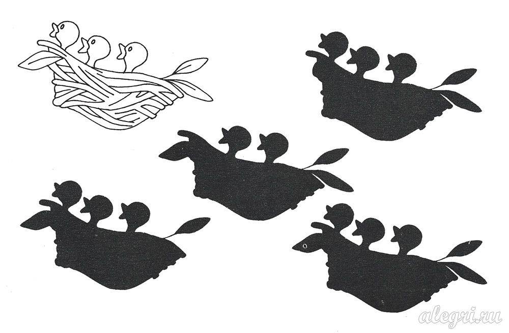 Соедини линией гнездо с его тенью.