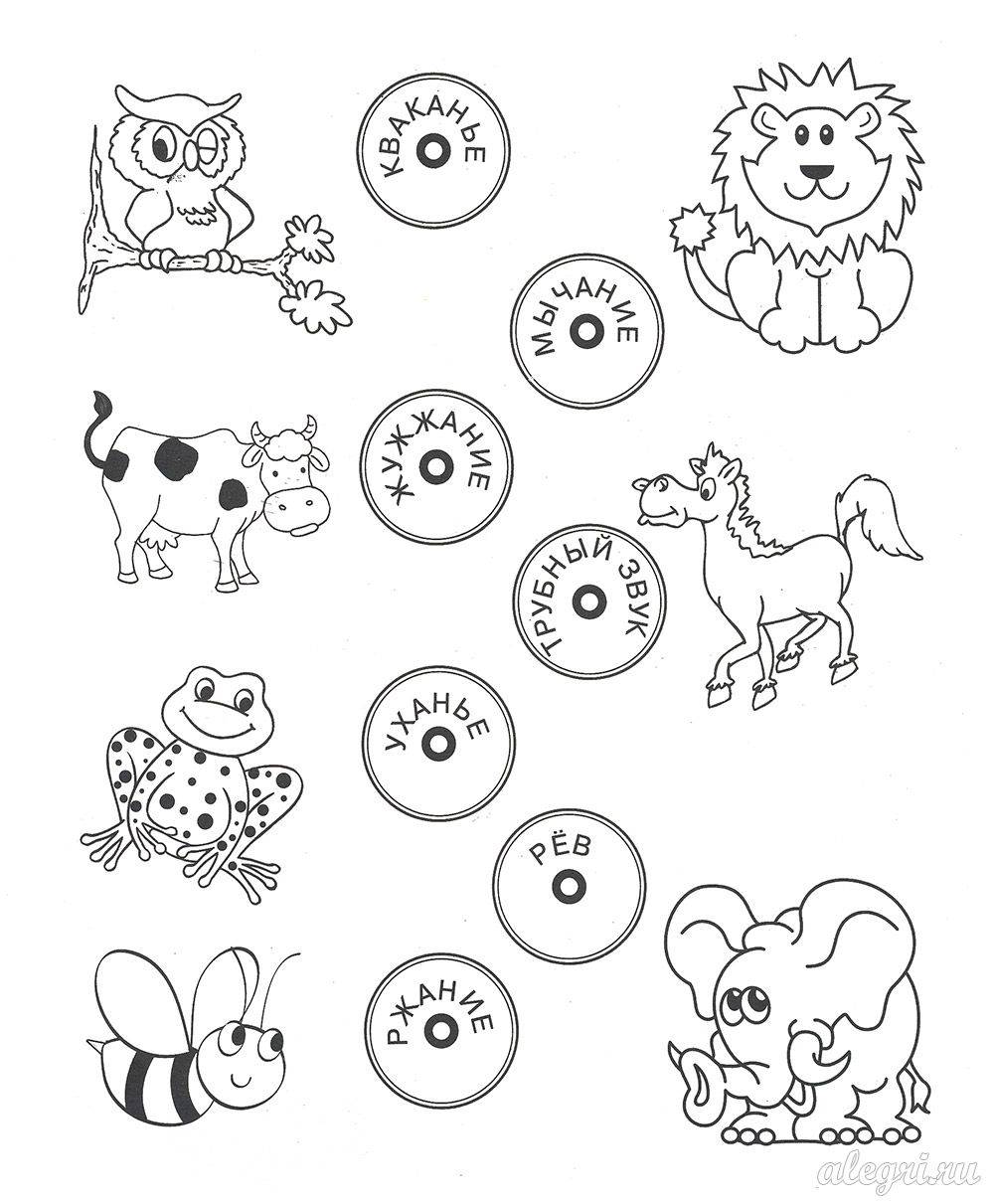 На дисках записаны голоса животных. Соедини линиями диски с соответствующими животными.