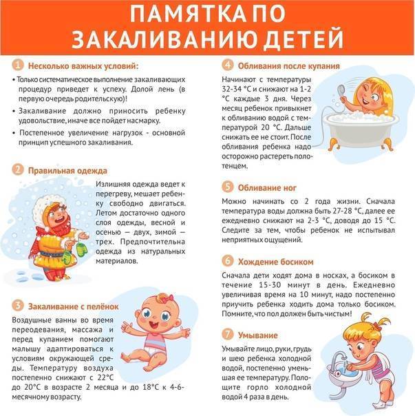 Следите за состоянием и настроением малыша во время закаливания. Слишком интенсивные мероприятия могут негативно отразиться на состоянии здоровья ребенка.