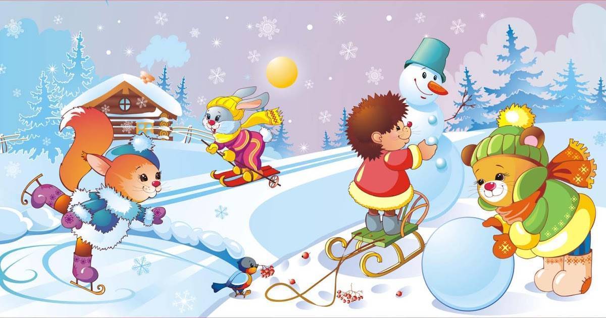 Обязательно рассматриваются популярные развлечения на свежем воздухе: лыжи, коньки, санки, снежки и другие.