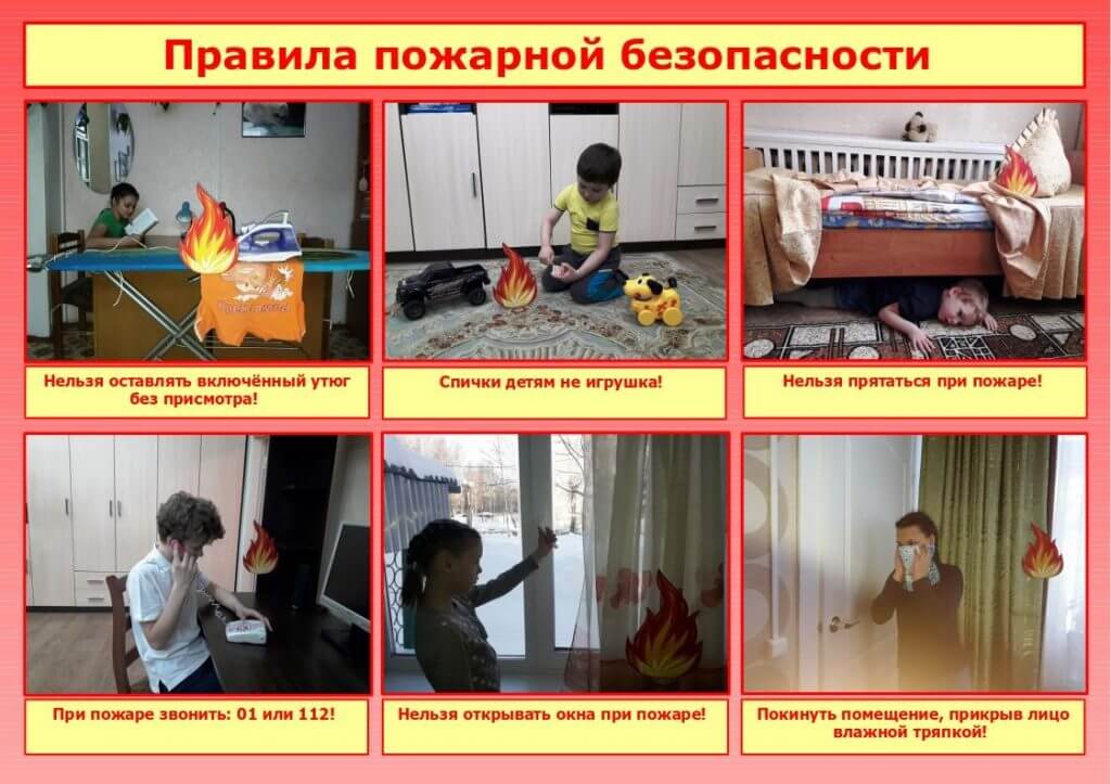 -Верно, молодцы, ребята. Если вдруг начался пожар, то нужно вызвать пожарных по номеру 101. Взять необходимую одежду и выбежать на улицу, вывести младших детей. Рассказать кому-то из взрослых о пожаре.