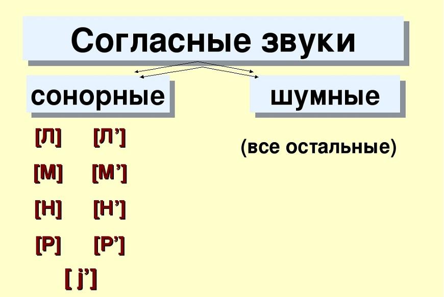 По участию голоса и шума все согласные делятся на сонорные и шумные.